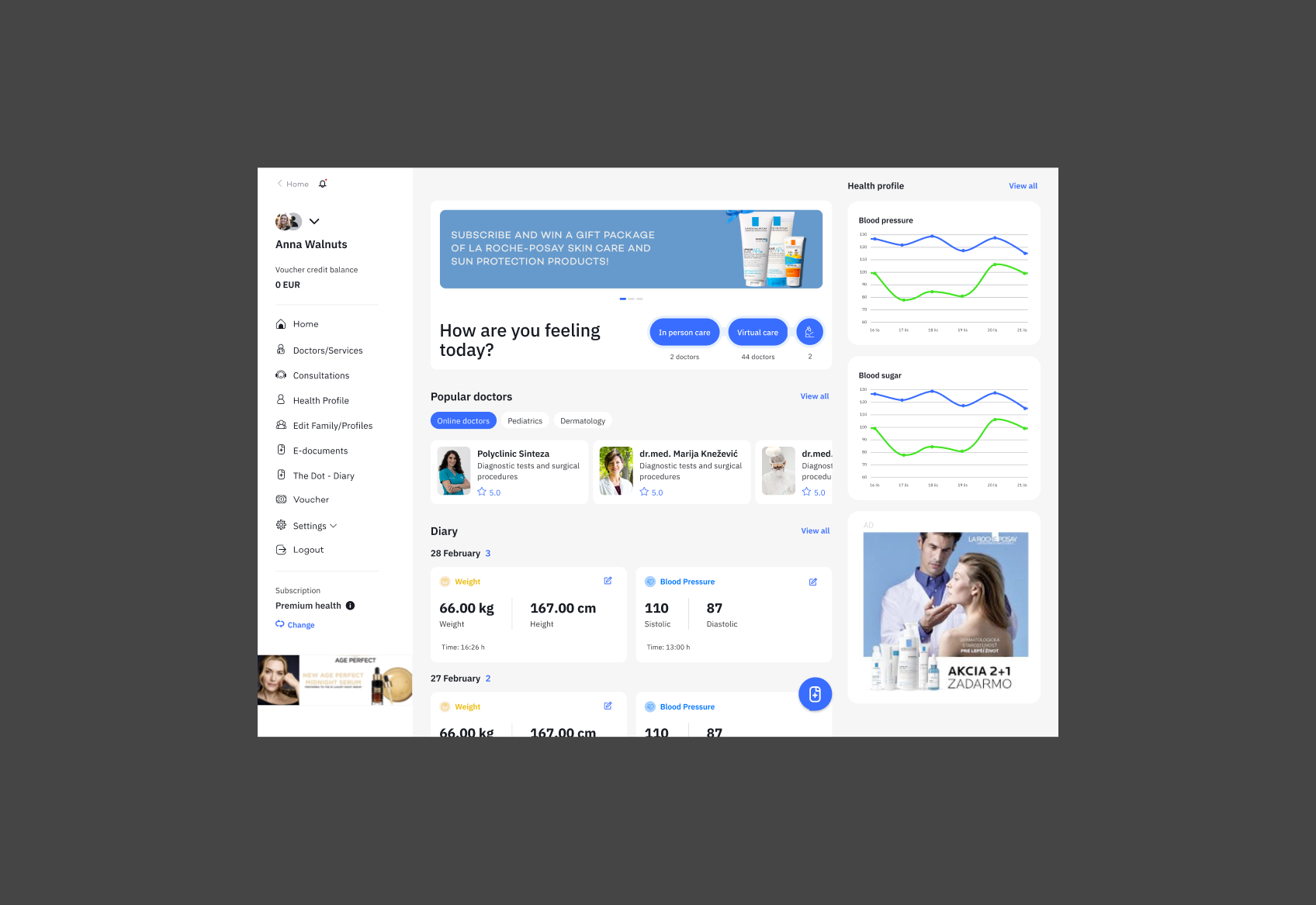 With app users can maintain digital health diaries for each family member. These diaries include sections for recording vital health information such as temperature readings, allergies, medication history, and more. This feature aids in accurate health tracking and efficient communication with healthcare professionals.